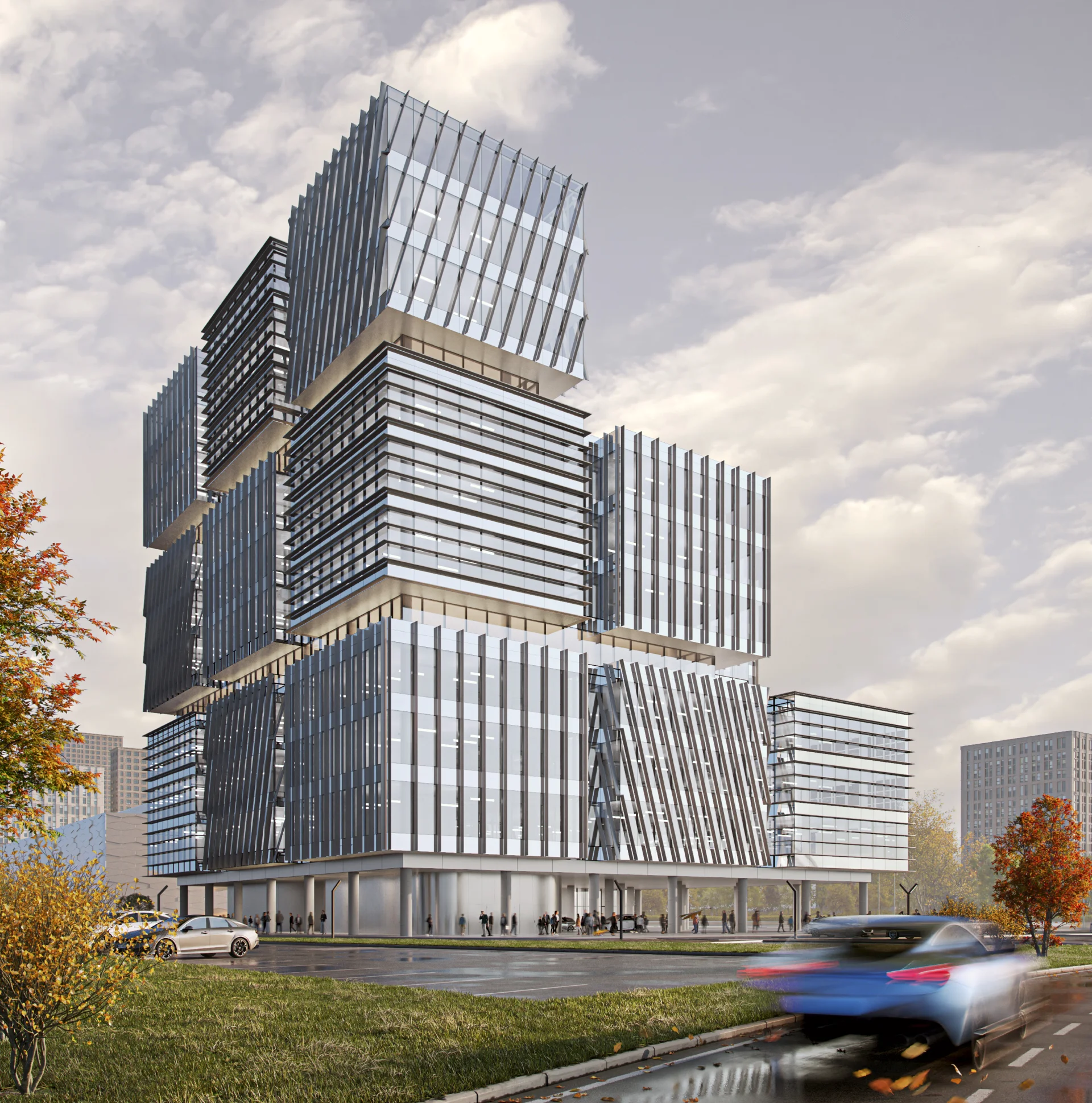 Современное отдельно стоящее, монообъёмное 11 этажное офисное здание класса Б+, расположенное в 5 минутах от Москва‑Сити с уникальной архитектурой — 23 блока кубической формы.